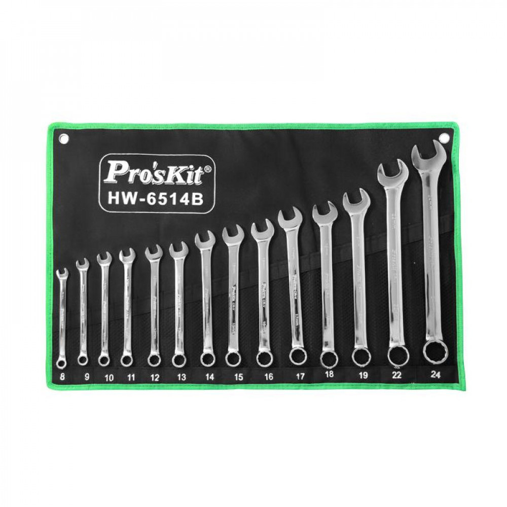 HW-6514B, Набор комбинированных гаечных ключей из 14 метрических ключей от 8 до 24мм