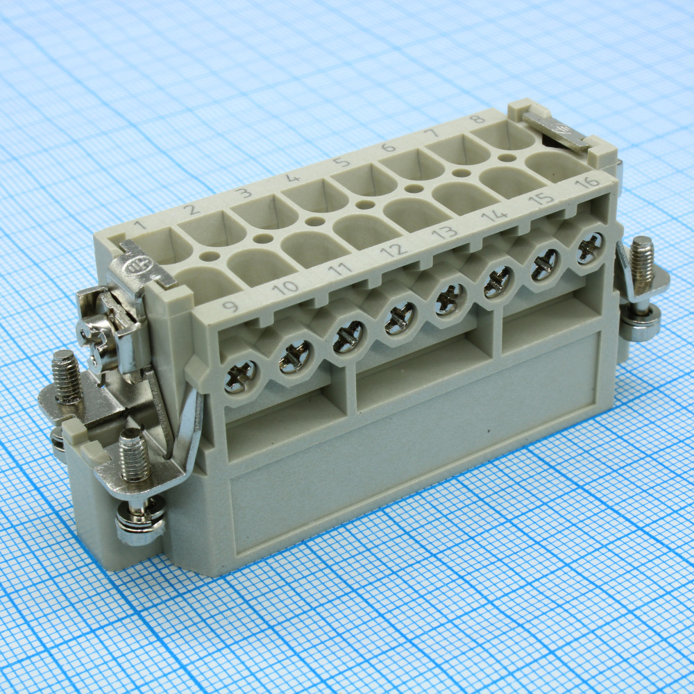 Вилочная контактная вставка, винтовая фиксация, 16 полюсов + PE, типоразмер 16A, 250V, 16A, сечение обслуживаемых проводников 0,75-2,5 мм кв, тип покрытия контактов: серебро