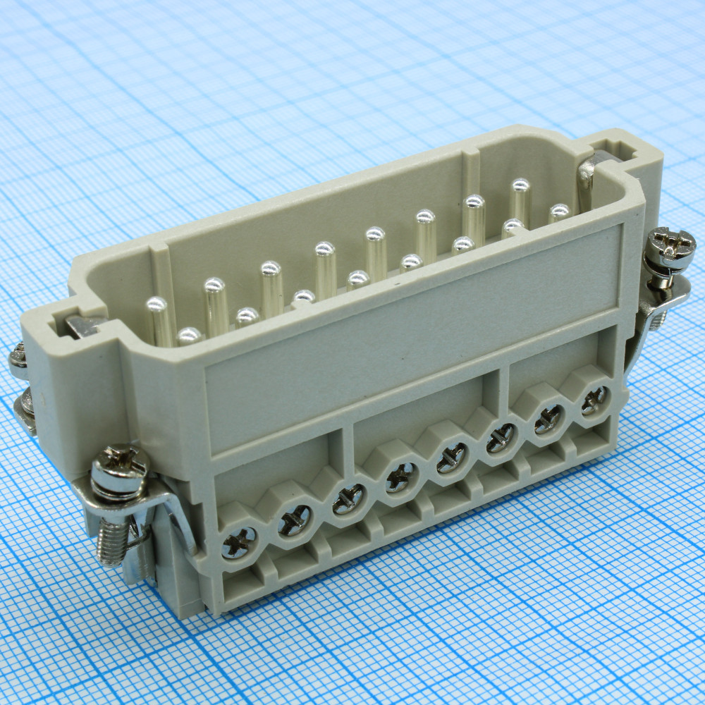 Доставка Вилочная контактная вставка DA-016-M , Вилочная контактная вставка, винтовая фиксация, 16 полюсов + PE, типоразмер 16A, 250V, 16A, сечение обслуживаемых проводников 0,75-2,5 мм кв, тип покрытия контактов: серебро