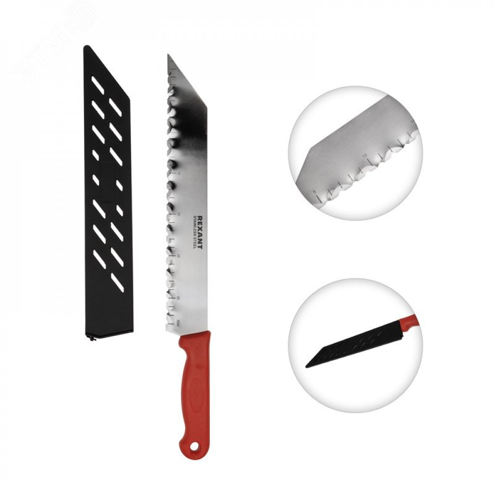 Нож REXANT предназначен для резки теплоизоляционных панелей, изготовленных из различных материалов, таких как - пенополистирол, минеральная вата, древесное волокно. Инструмент имеет специальный профиль стального лезвия для лучшей производительности. Пластиковая рукоять не скользит в ладони, чем обеспечивает дополнительный комфорт при работе. Для безопасного и удобного хранения, транспортировки предусмотрен пластиковый чехол.