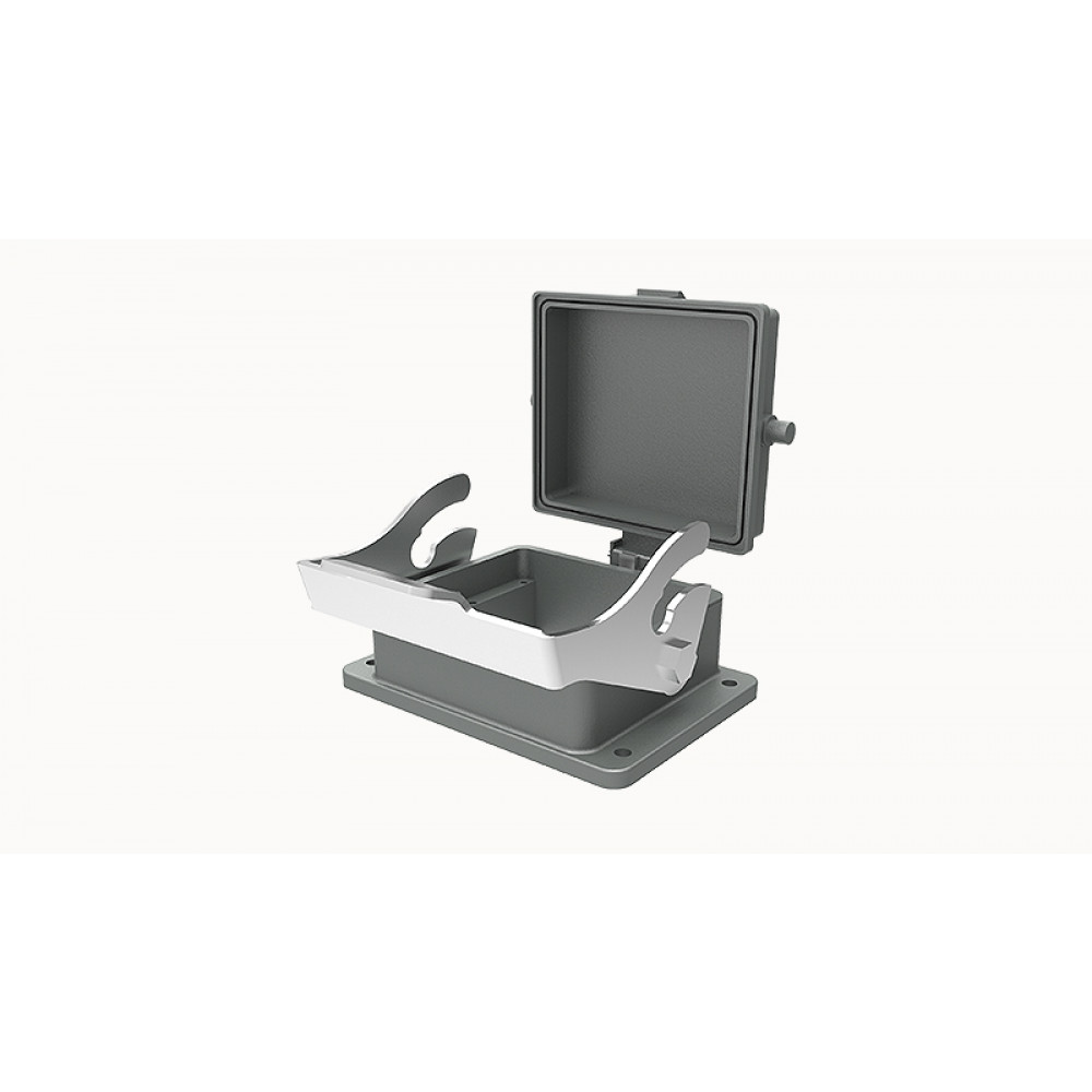 Открытое основание разъема D32B-BK-1L-CV, Основание разъема на панель, открытое, типоразмер 32B, с уплотнителем, с одной защелкой, с защитной крышкой, материал корпуса: алюминиевый сплав