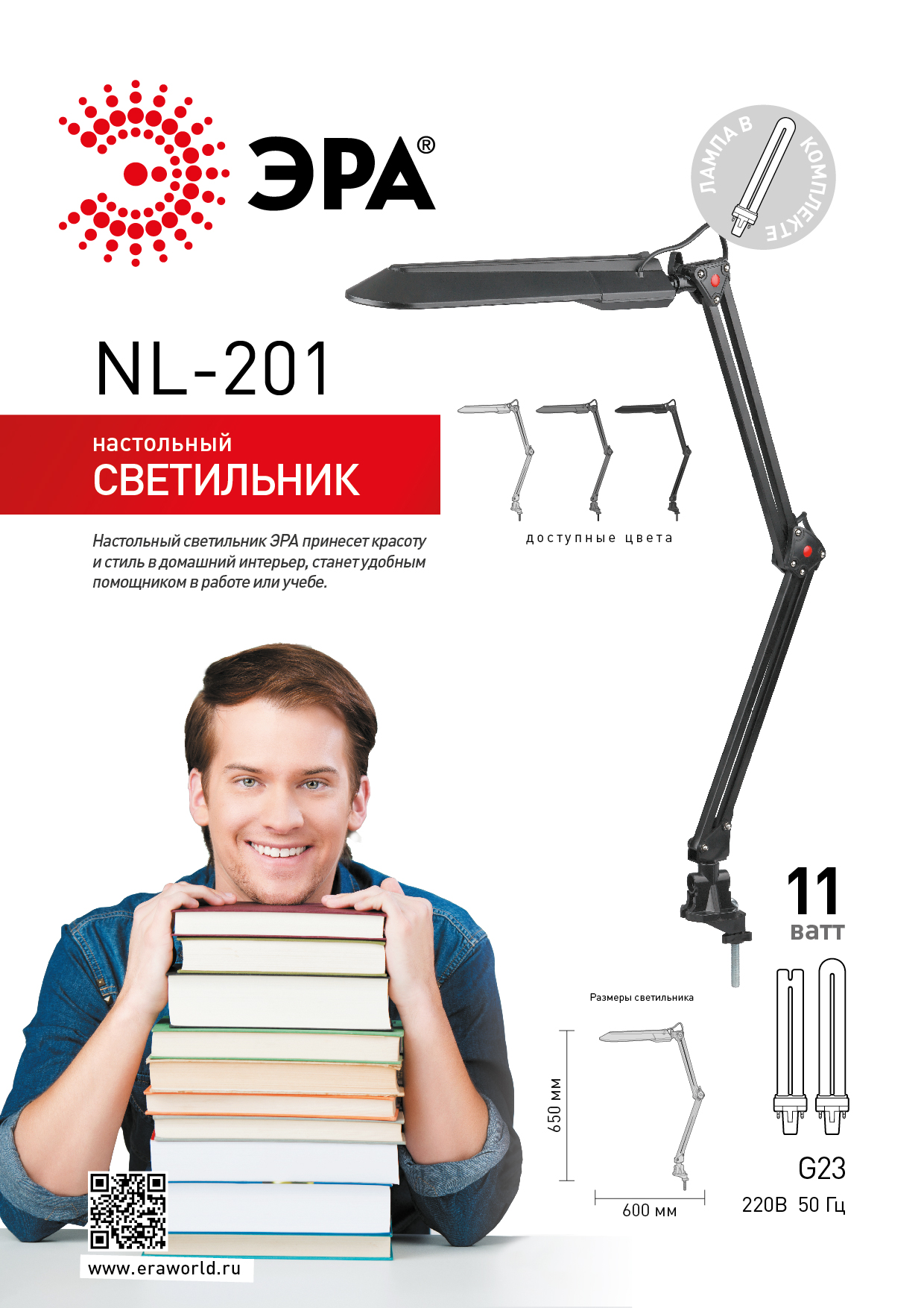 Наст.светильник NL-201-G23-11W-GY серый (12/216) C0041458, Лампа настольная