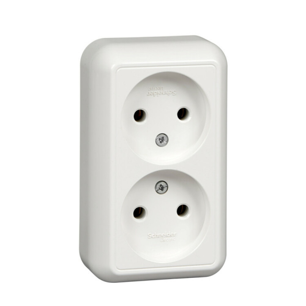 Описание ПРИМА О/У РОЗЕТКА 2-я без заземления без шторок 16А 250В, БЕЛЫЙ, RA16-213-BI