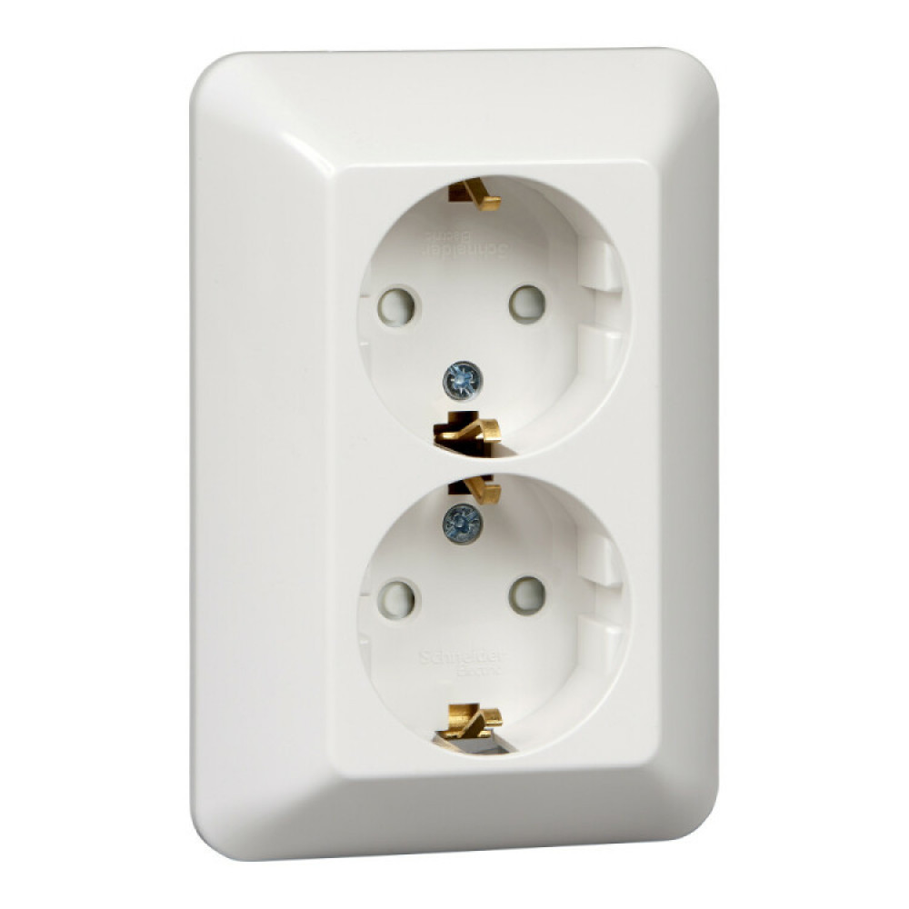 Описание ПРИМА С/У РОЗЕТКА 2-я с заземлением со шторками 16А 250В, БЕЛЫЙ, опт.уп.Россия C3(+) RS16-212-B