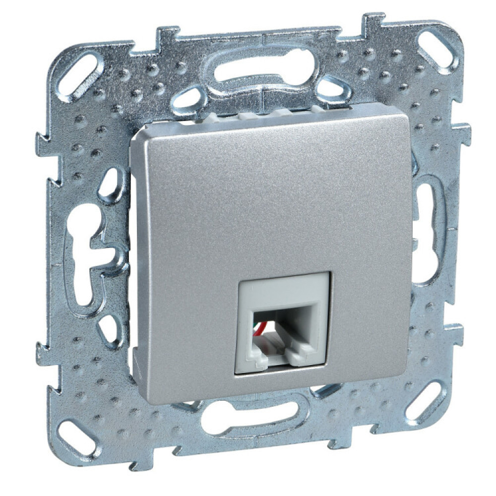 Описание UNICA TOP РОЗЕТКА телефонная, RJ11, одиночная, 4 контакта, АЛЮМИНИЙ MGU5.492.30ZD