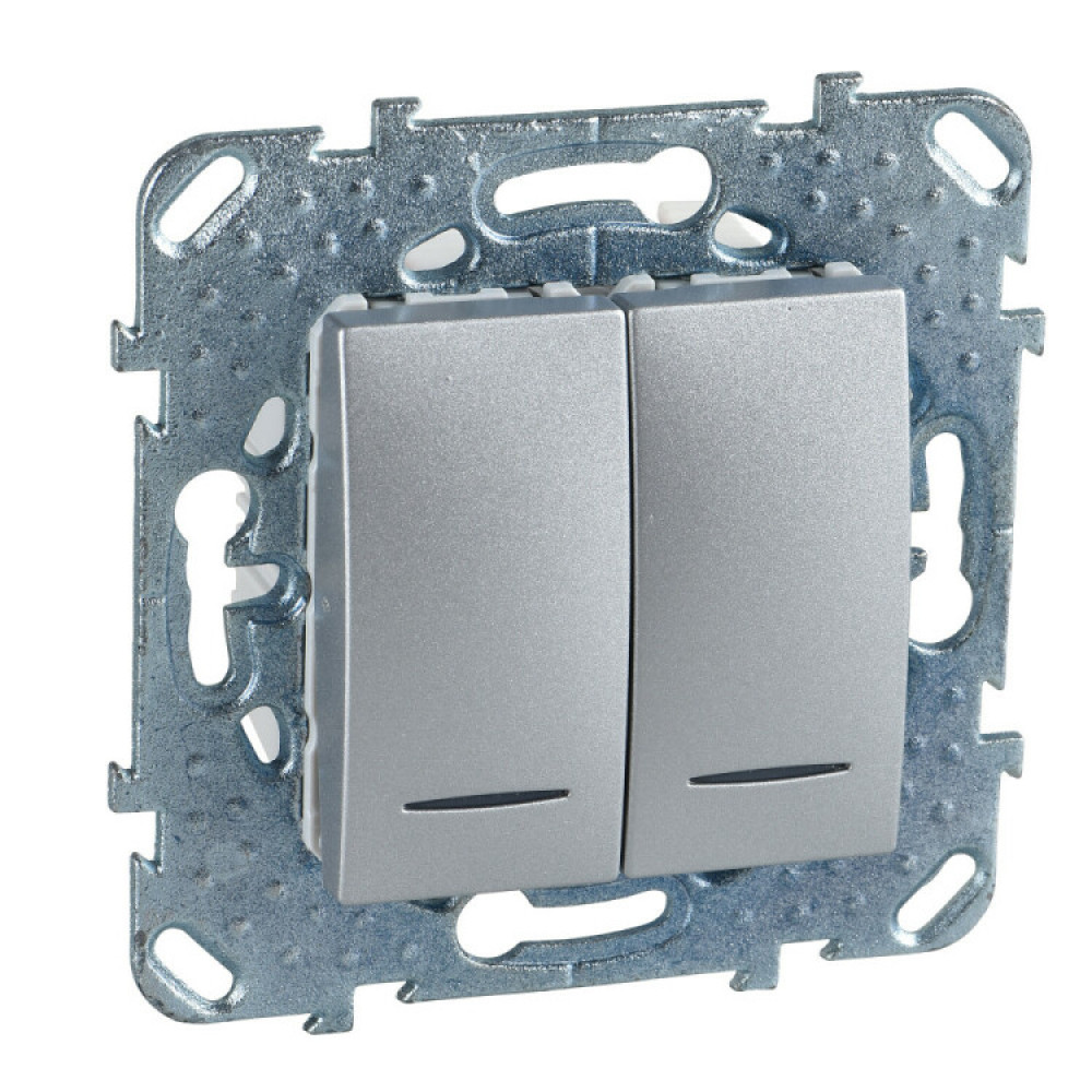 Описание UNICA TOP ВЫКЛЮЧАТЕЛЬ 2-клавишный, 2 модуля, с подсветкой, 2 х сх. 1а, АЛЮМИНИЙ MGU5.0101.30NZD