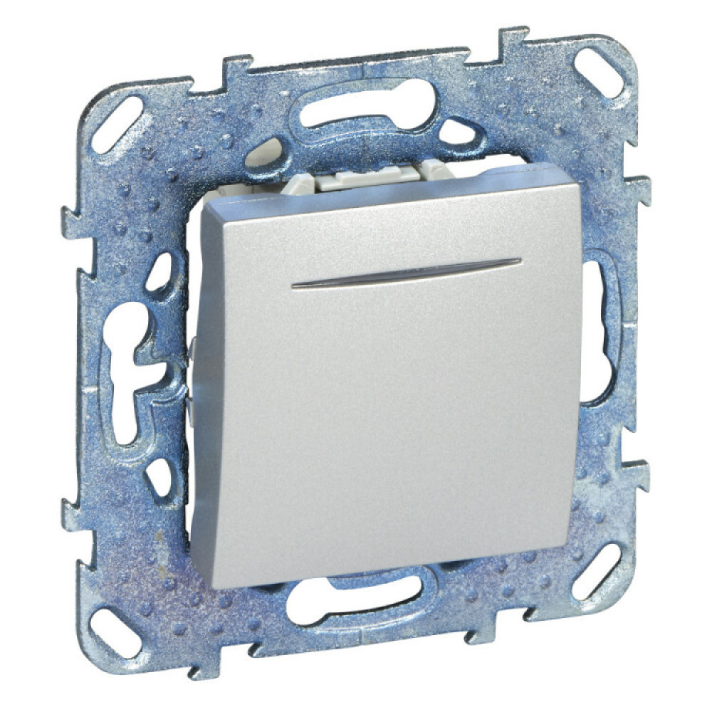 UNICA TOP ПЕРЕКЛЮЧАТЕЛЬ 1-клавишный, с подсветкой, сх. 6а, АЛЮМИНИЙ MGU5.203.30NZD, Выключатель и переключатель скрытого монтажа