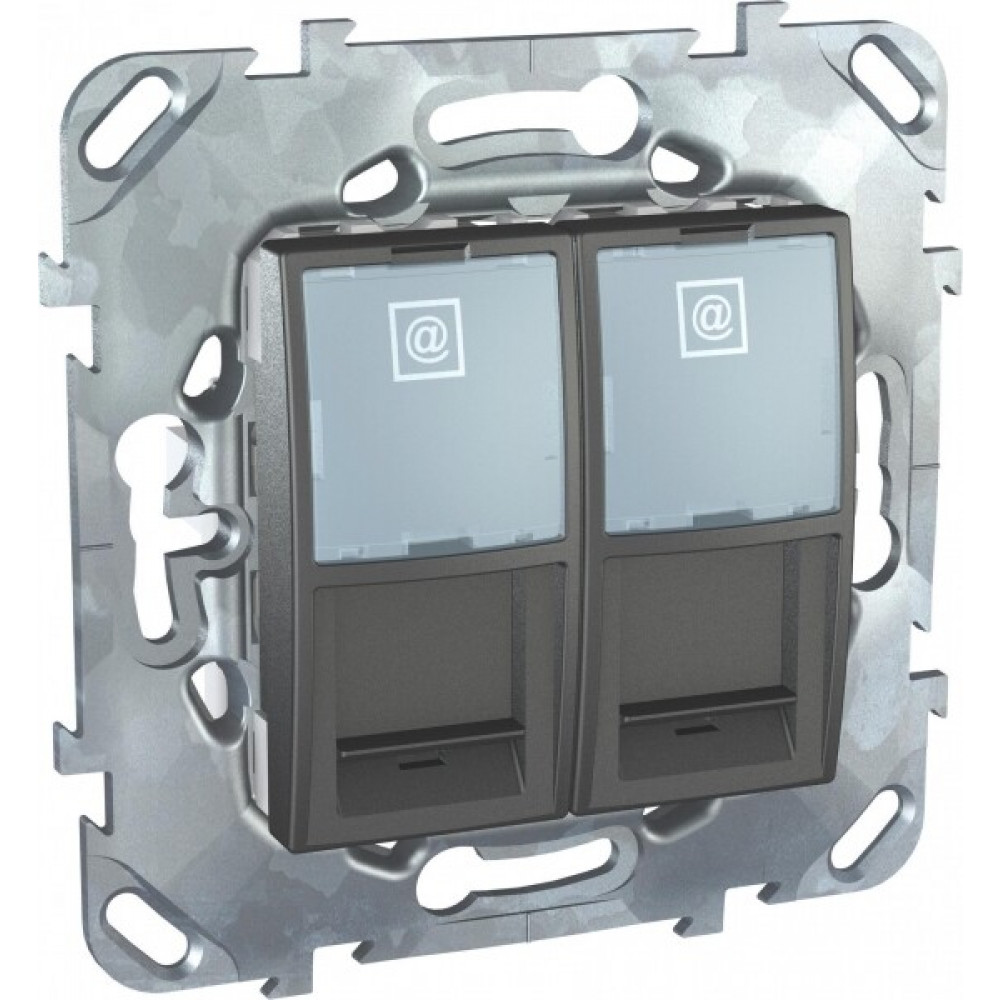 UNICA TOP РОЗЕТКА компьют., RJ45, двойная, кат. 5е, с полем для надп., ГРАФИТ MGU5.2020.12ZD, Розетка скрытого монтажа