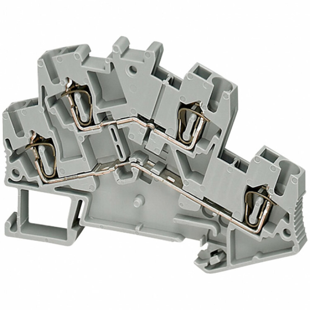 Этажная клемма, 2 этажа, тип фиксации провода: пружинный, номинальное сечение: 2,5 мм кв., 22A, 500V, ширина: 5,2 мм, цвет: серый, тип монтажа: DIN35