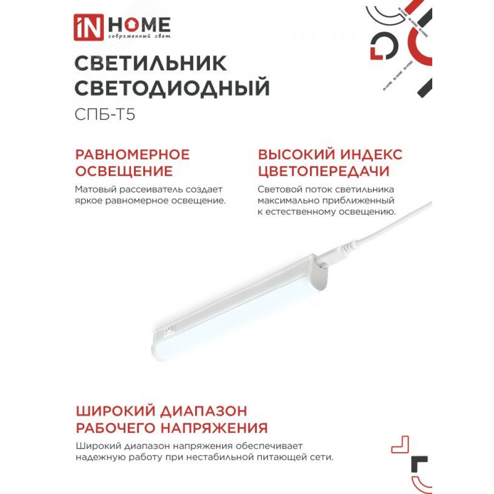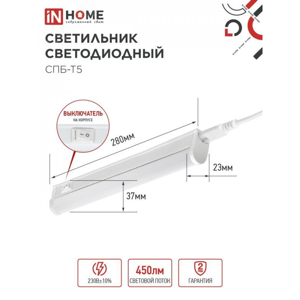 Описание Светильник светодиодный СПБ-Т5 5Вт 6500К 230В 450лм 300мм 4690612012223