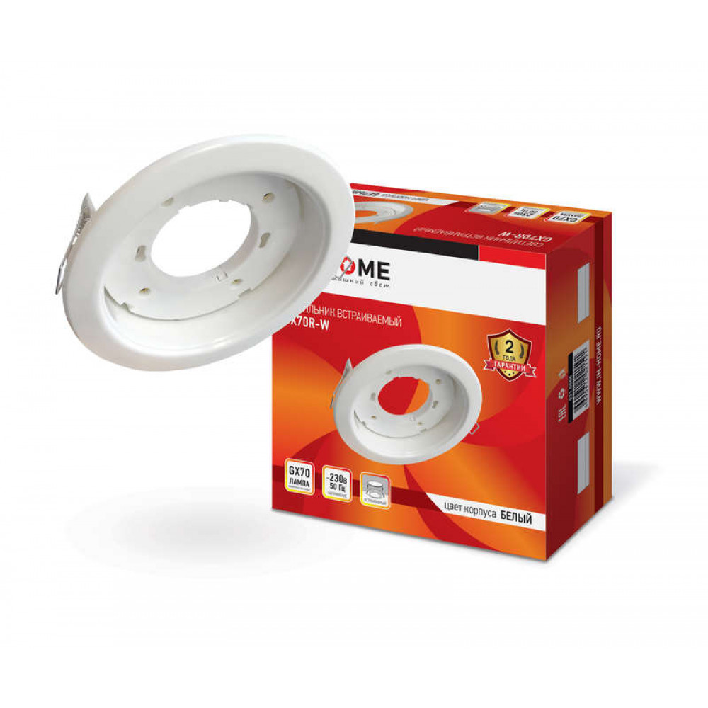 Описание Светильник встраиваемый GX70R RW металл под лампу GX70 230В белый 4690612021591