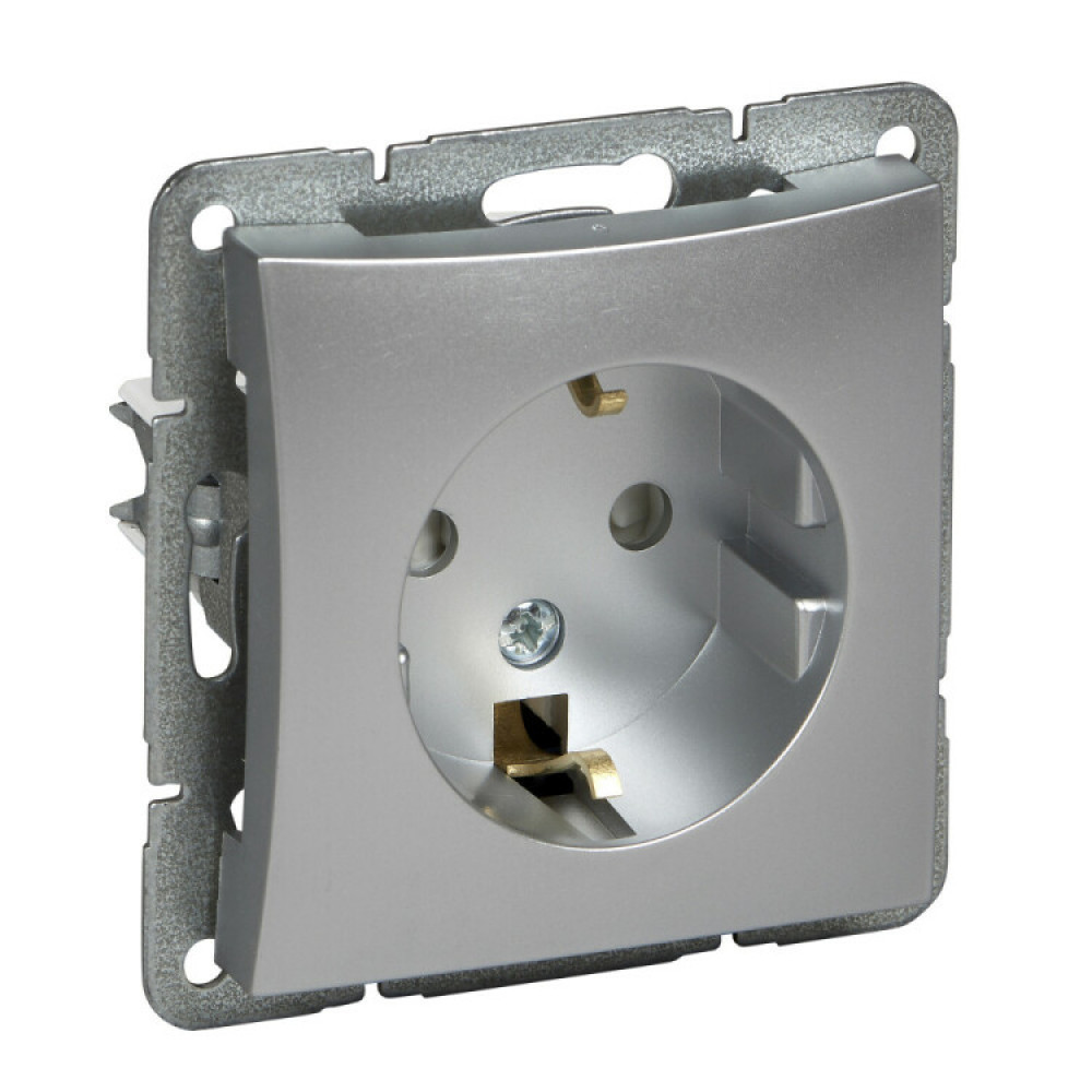 Описание ДУЭТ РОЗЕТКА с заземлением со шторками, 16А, механизм, СЕРЕБРИСТЫЙ C3(2) WDE000345