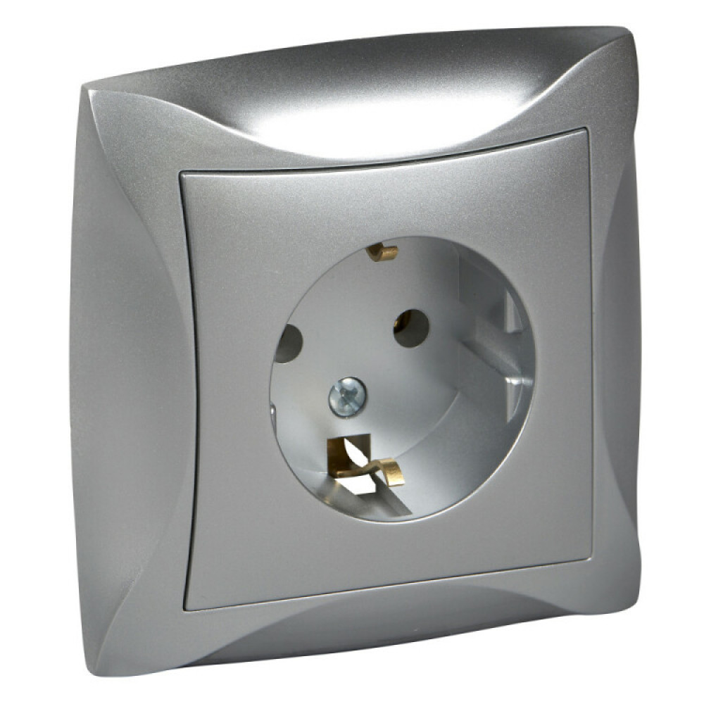 ДУЭТ РОЗЕТКА с заземлением, 16А, в сборе, СЕРЕБРИСТЫЙ C3(2) WDE000342, Розетка скрытого монтажа