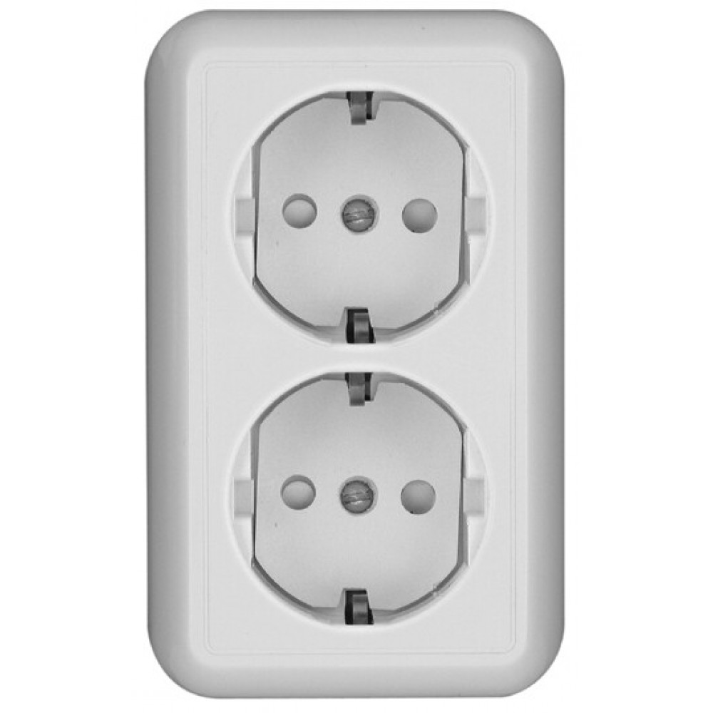 ПРИМА О/У РОЗЕТКА двойная с заземлением со шторками16А 250В, БЕЛЫЙ,опт.уп.Россия C3(2) RA16-757-B, Розетка открытого монтажа