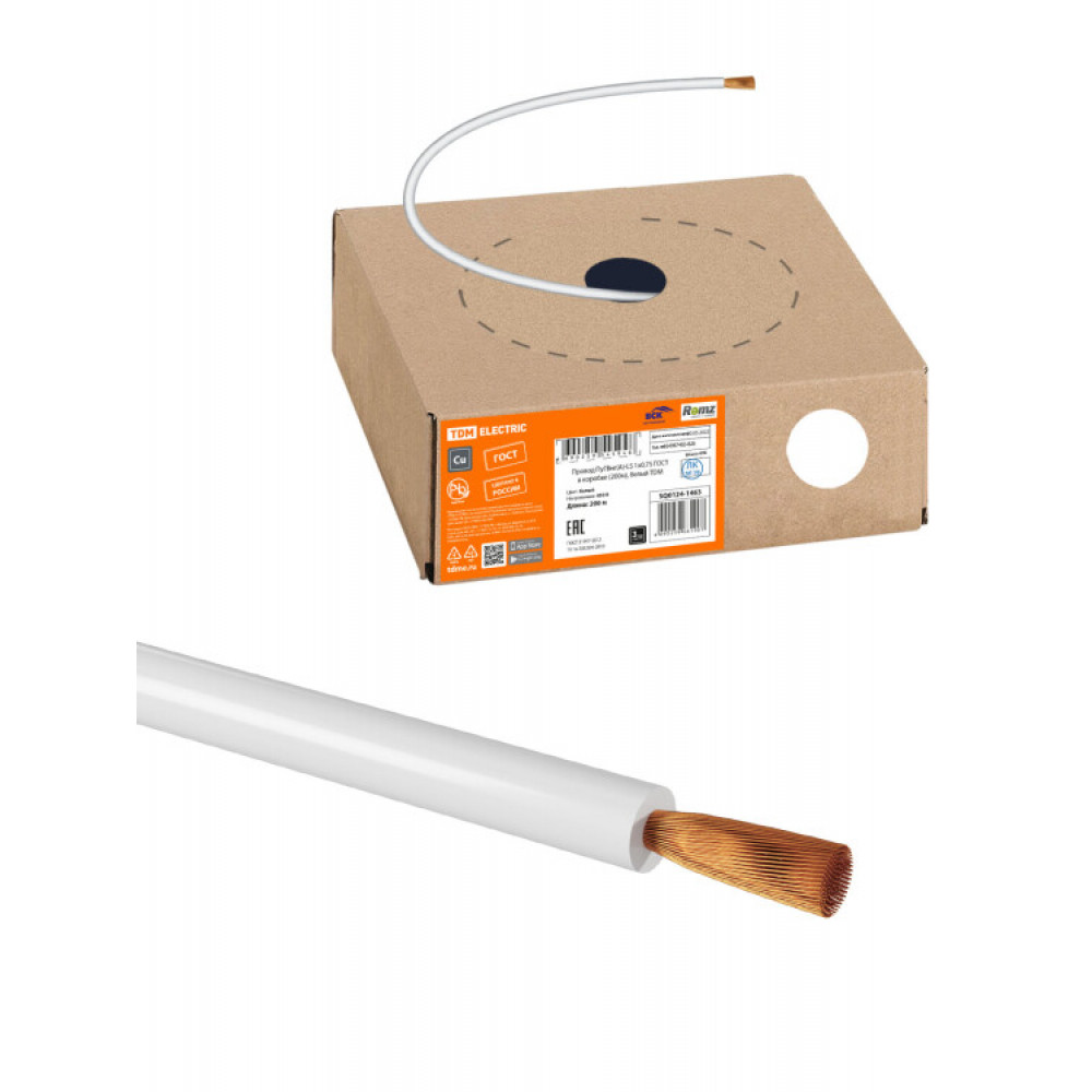 Провод ПуГВнг(А)-LS 1х0,75 ГОСТ в коробке (200м), белый SQ0124-1463, Кабель и провод силовой гибкий