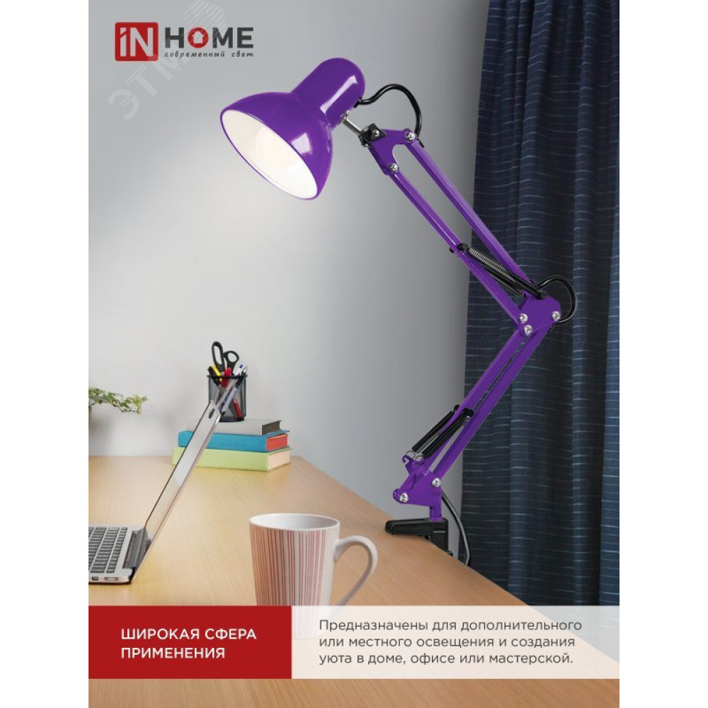 Описание Светильник настольный под лампу СНО 15Ф на основании 60Вт E27 230В ФИОЛЕТОВЫЙ (коробка) 4690612035871
