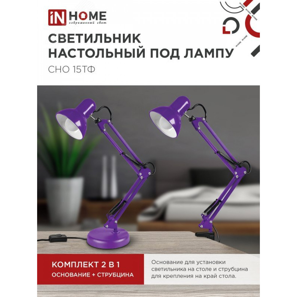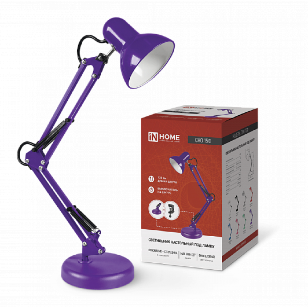 Светильник настольный под лампу СНО 15Ф на основании 60Вт E27 230В ФИОЛЕТОВЫЙ (коробка) 4690612035871, Лампа настольная