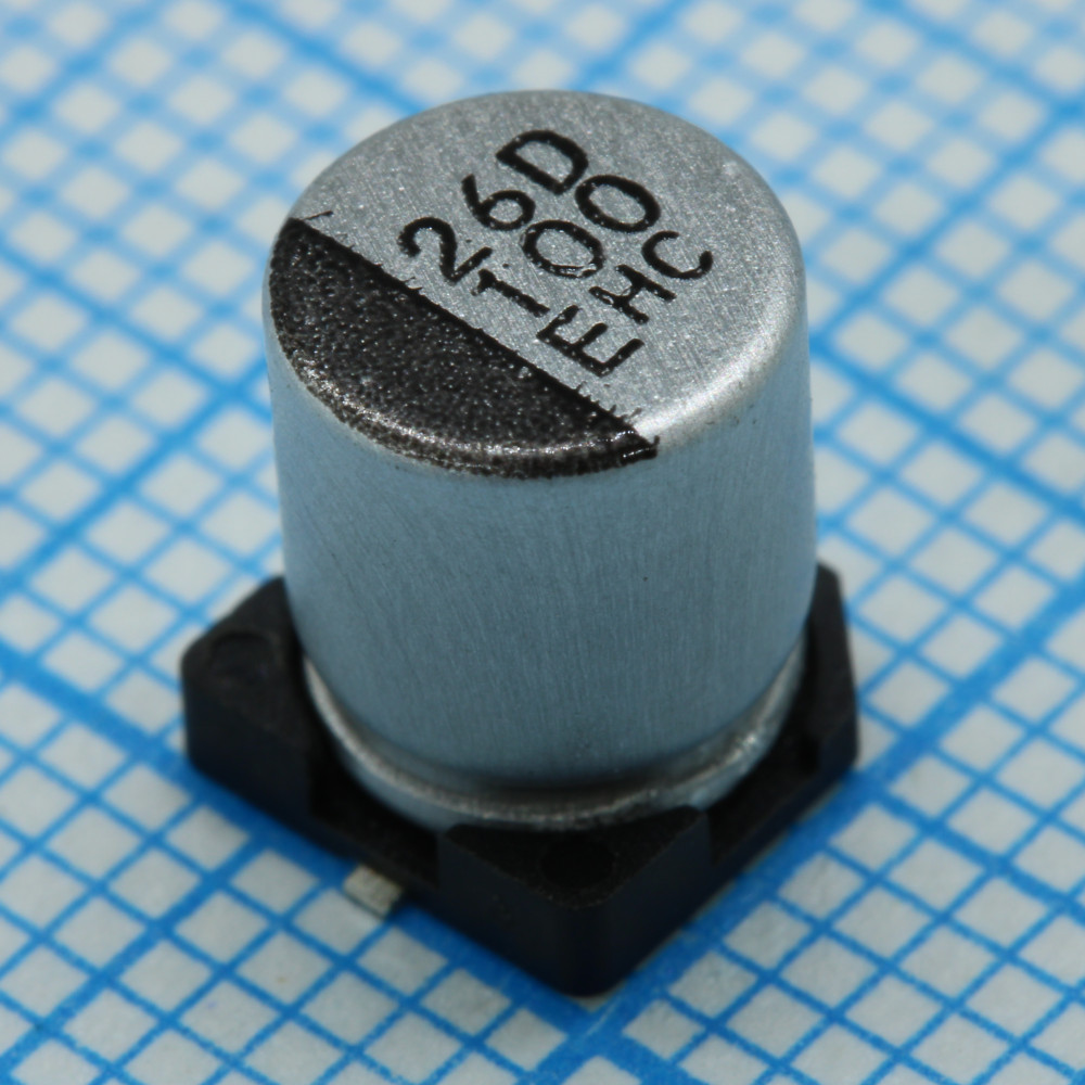 HHXC250ARA101MF80G, Полимерный гибридный алюминиевый конденсатор 100мкФ 25В ±20%( 6.3 X 7.7мм) для поверностного монтажа 0.03Ом 1400мА 4000час 125°C лента на катушке