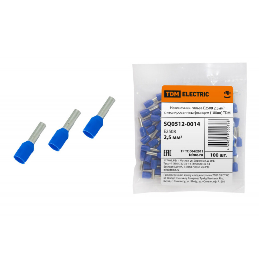 Доставка Наконечник-гильза Е2508 2,5мм2 с изолированным фланцем (100шт) SQ0512-0014