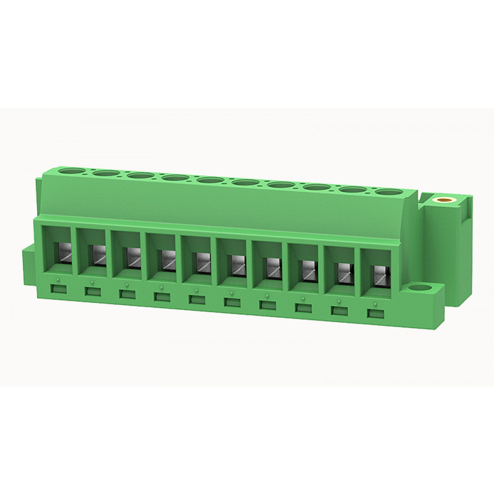 PCB вилка 2EDG-DBM-5.08-10P-14, Вилочный разъем, PCB, на кабель, угол 90 град., с монтажными фланцами,монтаж на поверхность,шаг 5,08 мм, 10 полюсов, сечение проводников: 0.2 - 2.5 мм кв., 320V, 12А, цвет: зеленый, серия 2EDG-DBM