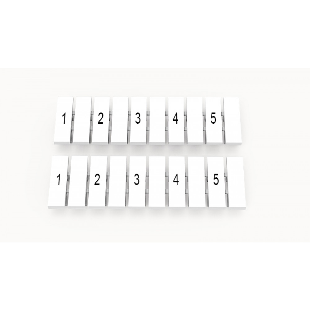 Маркировка (полоска) ZB3.5-10P-19-39Z(H), Кассета с маркировочными шильдиками, для клемм сечением 1,5 мм.кв., верхняя, 10 шильдиков, нанесенные символы: 1...2...3...4...5..., с вертикальным расположением, размер шильдика: 2,95 x 10,7 мм, цвет: белый