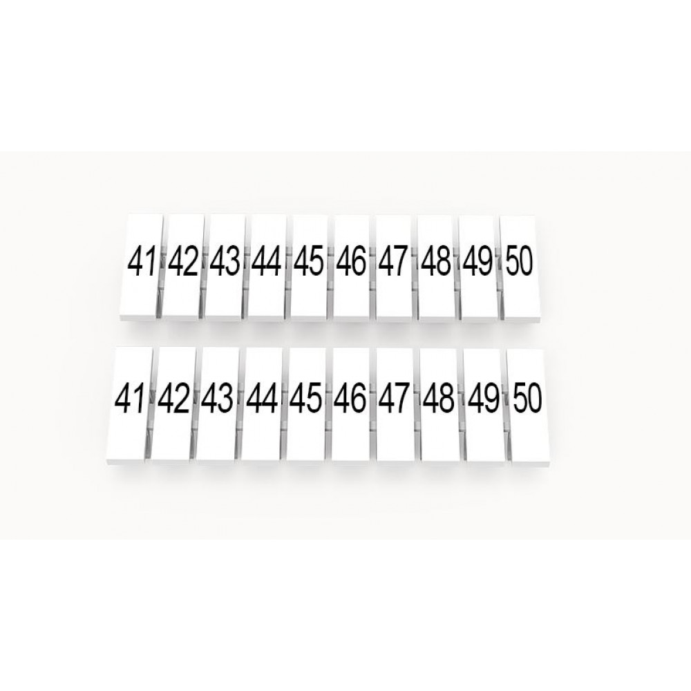 Кассета с маркировочными шильдиками, для клемм сечением 1,5 мм.кв., верхняя, 10 шильдиков, нанесенные символы: 41...50, с вертикальным расположением, размер шильдика: 3,65 x 10,7 мм, цвет: белый