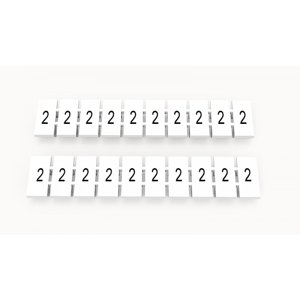 Кассета с маркировочными шильдиками, для клемм сечением 2,5 мм.кв., верхняя, 10 шильдиков, нанесенные символы: 2, с вертикальным расположением, размер шильдика: 4,55 x 10,7 мм, цвет: белый