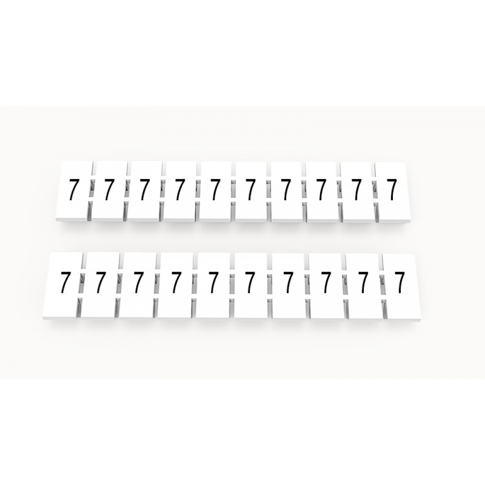 Кассета с маркировочными шильдиками, для клемм сечением 2,5 мм.кв., верхняя, 10 шильдиков, нанесенные символы: 7, с вертикальным расположением, размер шильдика: 4,55 x 10,7 мм, цвет: белый