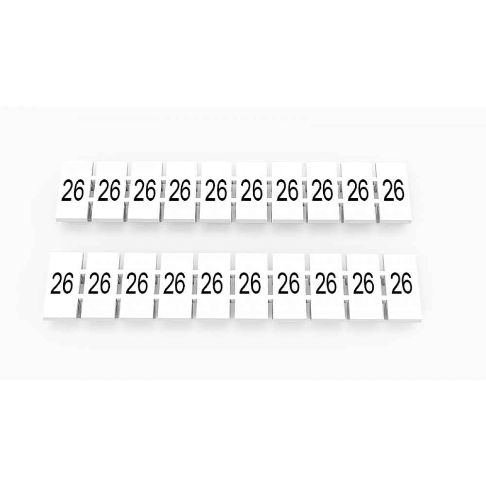 Кассета с маркировочными шильдиками, для клемм сечением 2,5 мм.кв., верхняя, 10 шильдиков, нанесенные символы: 26, с вертикальным расположением, размер шильдика: 4,55 x 10,7 мм, цвет: белый