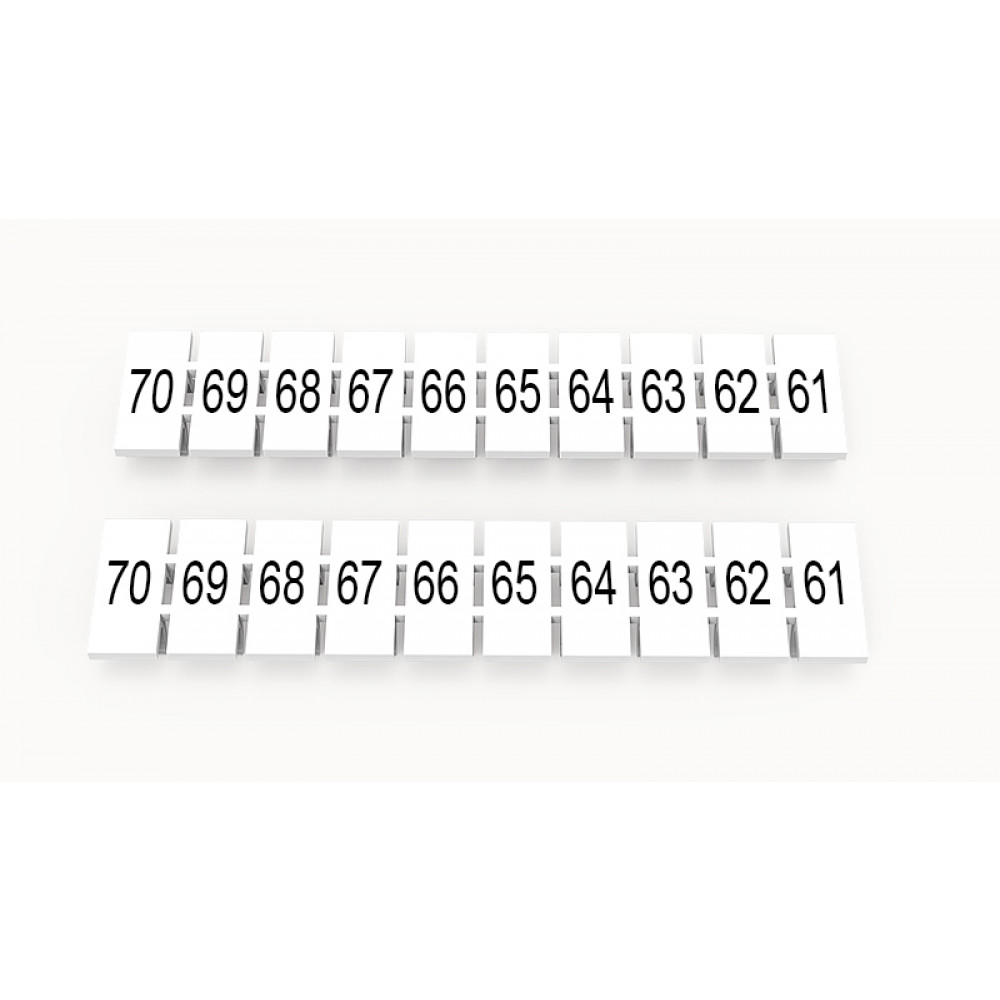 Кассета с маркировочными шильдиками, для клемм сечением 2,5 мм.кв., верхняя, 10 шильдиков, нанесенные символы: 70...61, с вертикальным расположением, размер шильдика: 4,55 x 10,7 мм, цвет: белый