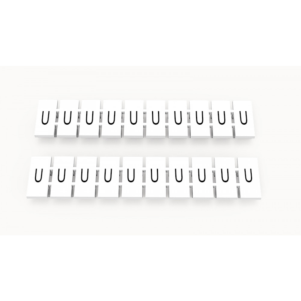 Кассета с маркировочными шильдиками, для клемм сечением 4 мм.кв., верхняя, 10 шильдиков, нанесенные символы: U, с вертикальным расположением, размер шильдика: 5,55 х 10,7 мм, цвет: белый