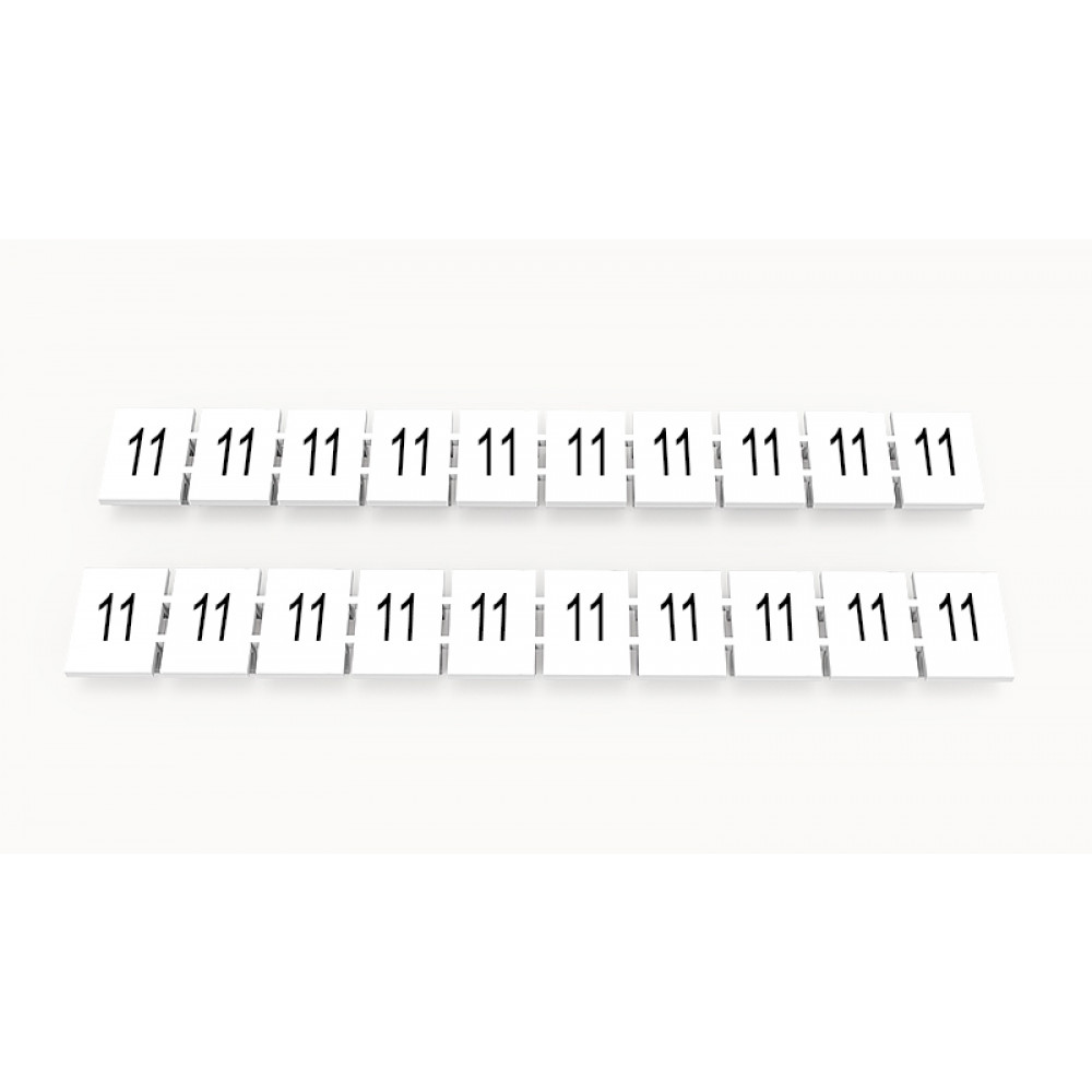Маркировка (в кассетах) ZB8-10P-19-203Z(H), Кассета с маркировочными шильдиками, для клемм сечением 6 мм.кв., верхняя, 10 шильдиков, нанесенные символы: 11, с вертикальным расположением, размер шильдика: 7,45 x 10,7 мм, цвет: белый