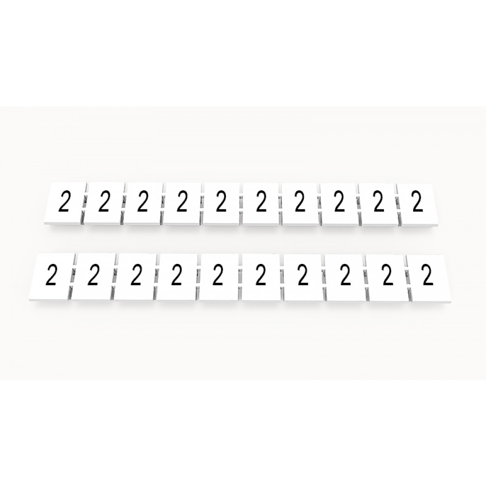 Кассета с маркировочными шильдиками, для клемм сечением 6 мм.кв., верхняя, 10 шильдиков, нанесенные символы: 2, с вертикальным расположением, размер шильдика: 7,45 x 10,7 мм, цвет: белый