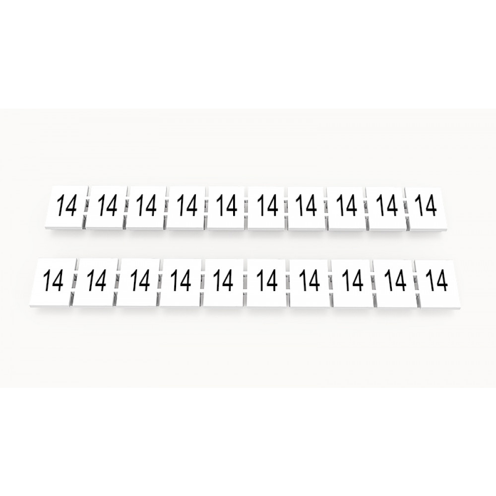Маркировка (в кассетах) ZB8-10P-19-33Z(H), Кассета с маркировочными шильдиками, для клемм сечением 6 мм.кв., верхняя, 10 шильдиков, нанесенные символы: 14, с вертикальным расположением, размер шильдика: 7,45 x 10,7 мм, цвет: белый