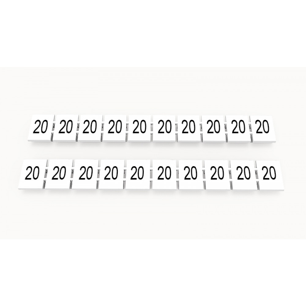 Кассета с маркировочными шильдиками, для клемм сечением 6 мм.кв., верхняя, 10 шильдиков, нанесенные символы: 20, с вертикальным расположением, размер шильдика: 7,45 x 10,7 мм, цвет: белый