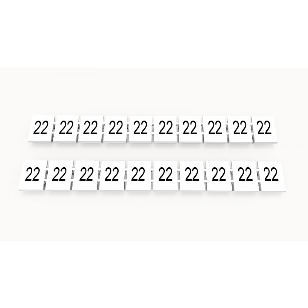 Кассета с маркировочными шильдиками, для клемм сечением 6 мм.кв., верхняя, 10 шильдиков, нанесенные символы: 22, с вертикальным расположением, размер шильдика: 7,45 x 10,7 мм, цвет: белый