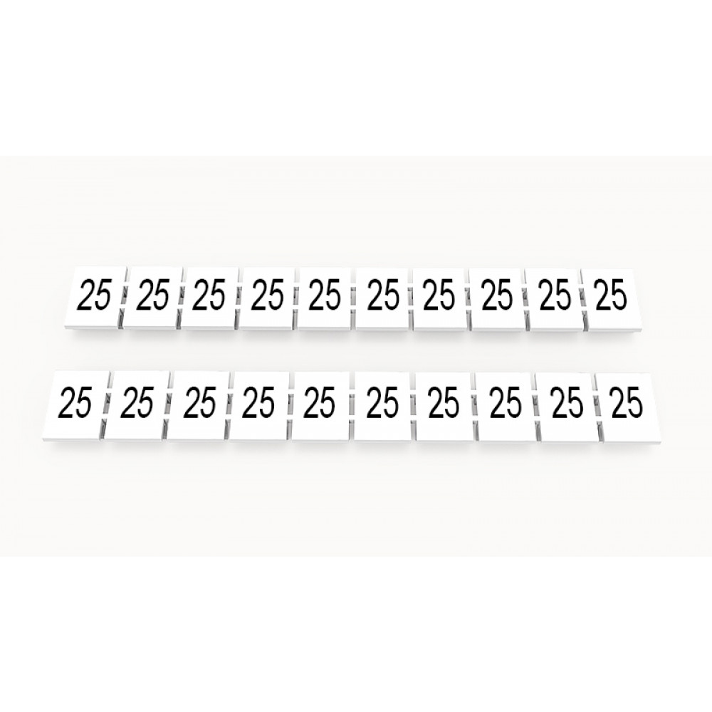 Кассета с маркировочными шильдиками, для клемм сечением 6 мм.кв., верхняя, 10 шильдиков, нанесенные символы: 25, с вертикальным расположением, размер шильдика: 7,45 x 10,7 мм, цвет: белый