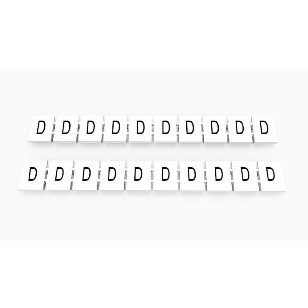 Кассета с маркировочными шильдиками, для клемм сечением 6 мм.кв., верхняя, 10 шильдиков, нанесенные символы: D, с вертикальным расположением, размер шильдика: 7,45 x 10,7 мм, цвет: белый