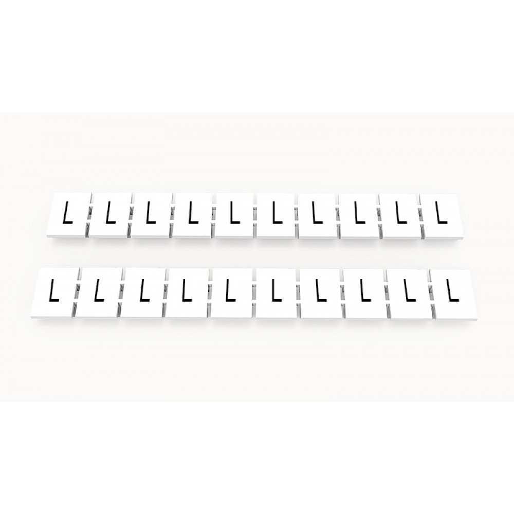 Кассета с маркировочными шильдиками, для клемм сечением 6 мм.кв., верхняя, 10 шильдиков, нанесенные символы: L, с вертикальным расположением, размер шильдика: 7,45 x 10,7 мм, цвет: белый
