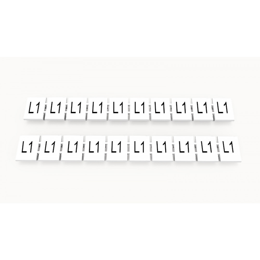 Кассета с маркировочными шильдиками, для клемм сечением 6 мм.кв., верхняя, 10 шильдиков, нанесенные символы: L1, с вертикальным расположением, размер шильдика: 7,45 x 10,7 мм, цвет: белый