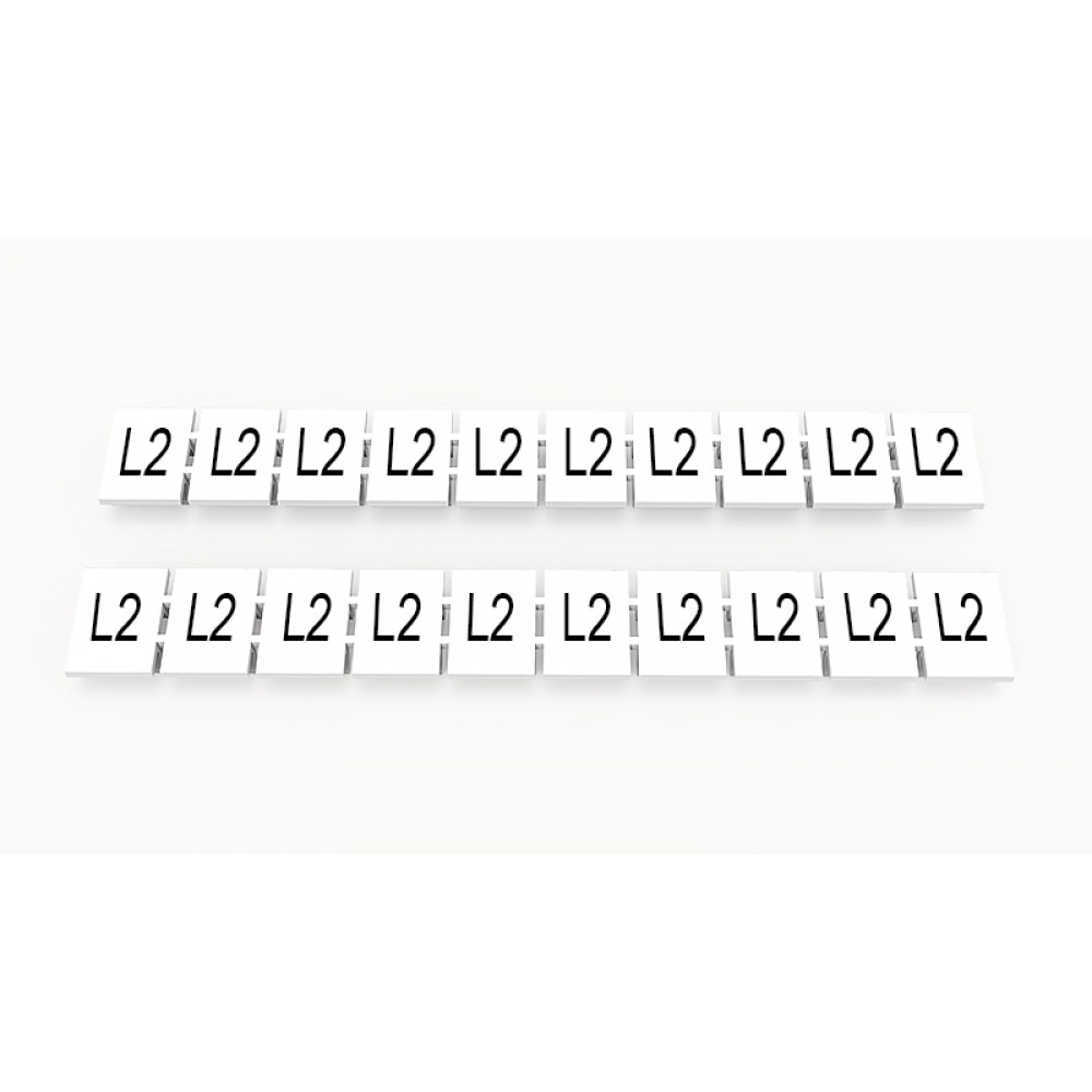 Кассета с маркировочными шильдиками, для клемм сечением 6 мм.кв., верхняя, 10 шильдиков, нанесенные символы: L2, с вертикальным расположением, размер шильдика: 7,45 x 10,7 мм, цвет: белый