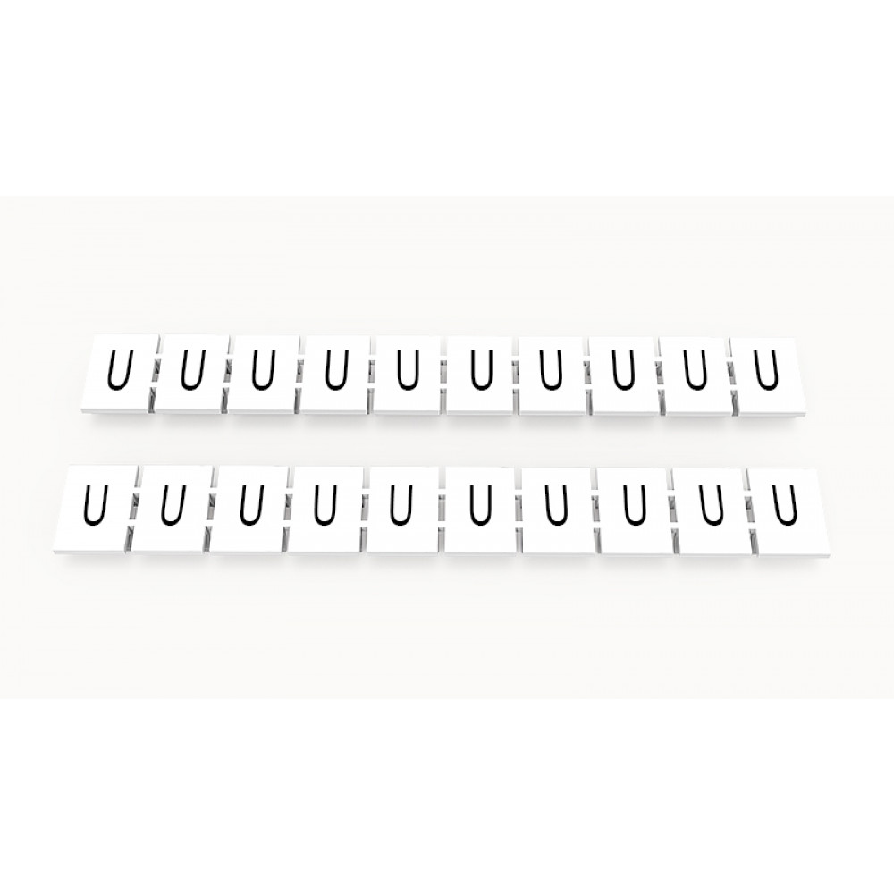 Кассета с маркировочными шильдиками, для клемм сечением 6 мм.кв., верхняя, 10 шильдиков, нанесенные символы: U, с вертикальным расположением, размер шильдика: 7,45 x 10,7 мм, цвет: белый