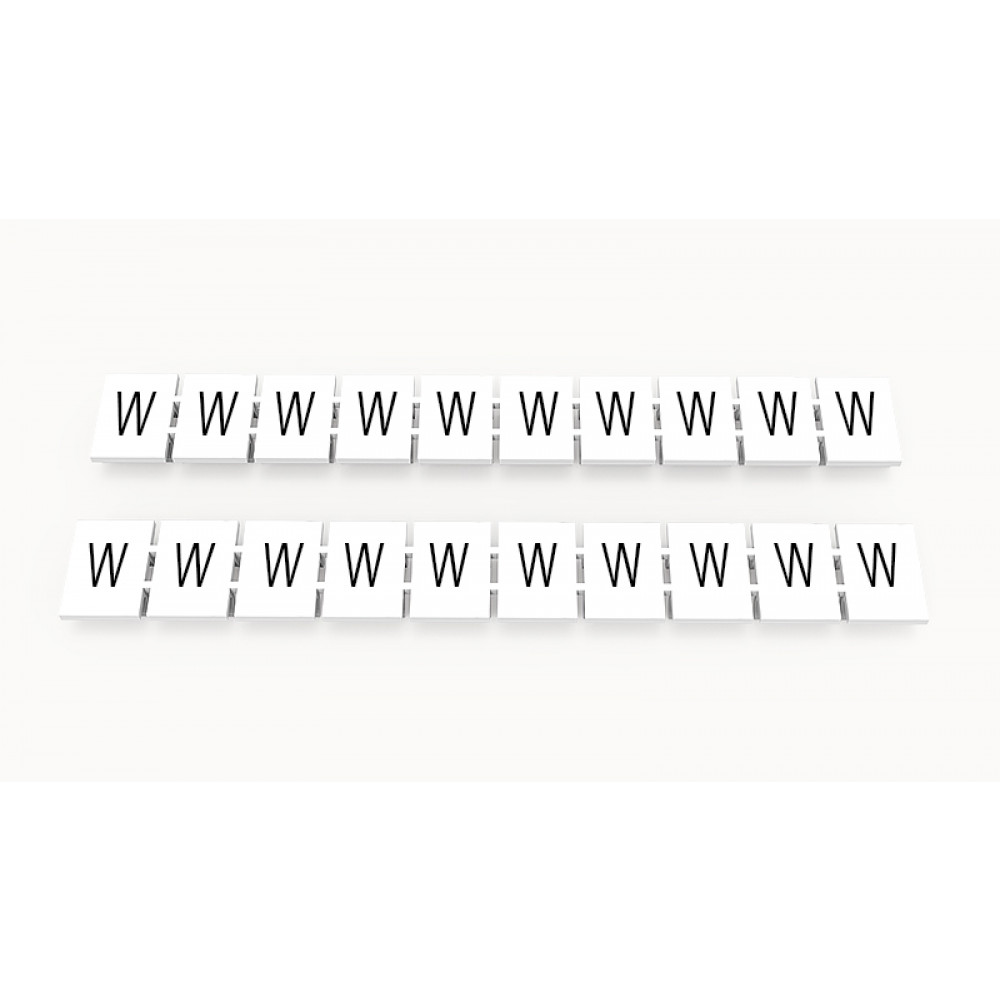 Кассета с маркировочными шильдиками, для клемм сечением 6 мм.кв., верхняя, 10 шильдиков, нанесенные символы: W, с вертикальным расположением, размер шильдика: 7,45 x 10,7 мм, цвет: белый