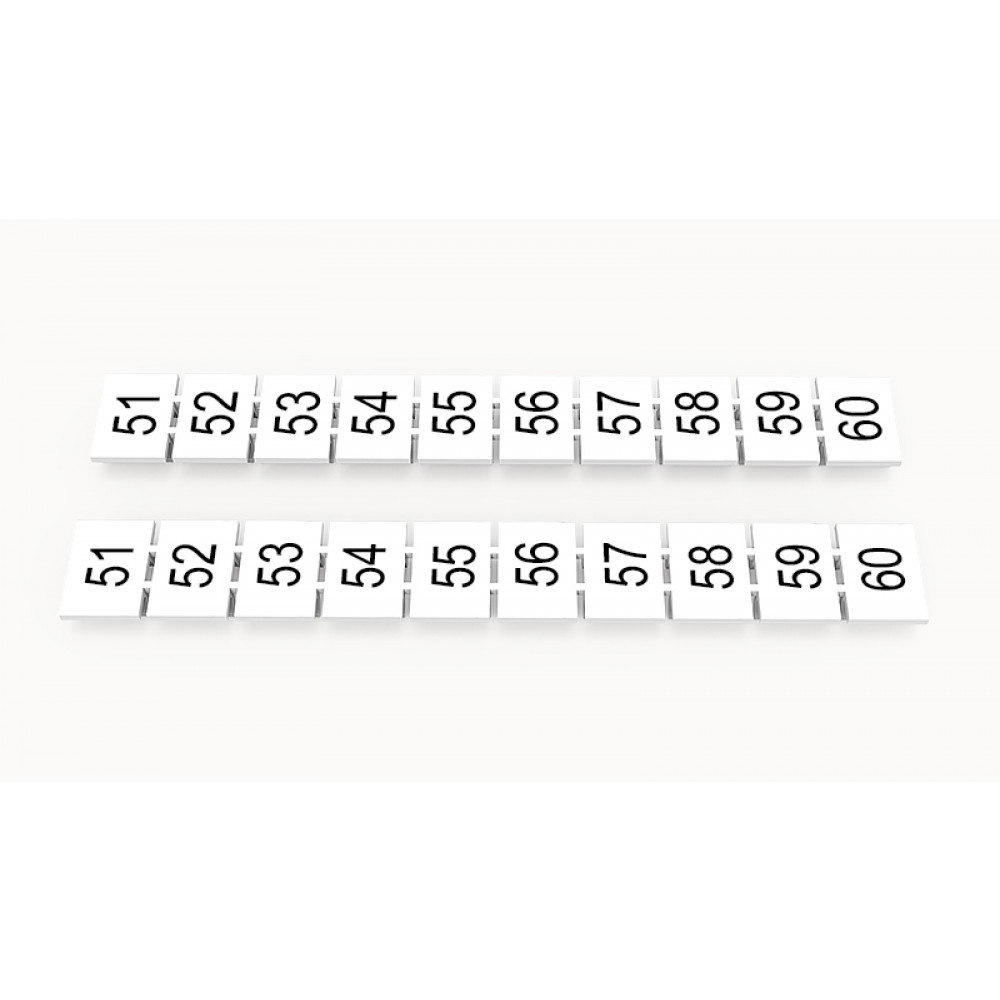 Кассета с маркировочными шильдиками, для клемм сечением 6 мм.кв., верхняя, 10 шильдиков, нанесенные символы: 51...60, с горизонтальным расположением, размер шильдика: 7,45 x 10,7 мм, цвет: белый