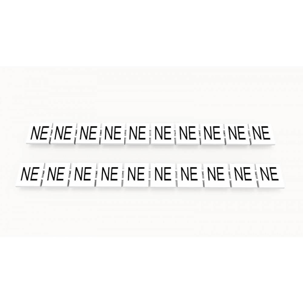 Кассета с маркировочными шильдиками, для клемм сечением 10 мм.кв., верхняя, 10 шильдиков, нанесенные символы: NE, с вертикальным расположением, размер шильдика: 9,3 x 10,7 мм, цвет: белый