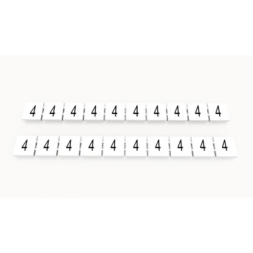 Кассета с маркировочными шильдиками, для клемм сечением 10 мм.кв., верхняя, 10 шильдиков, нанесенные символы: 4, с вертикальным расположением, размер шильдика: 9,3 x 10,7 мм, цвет: белый
