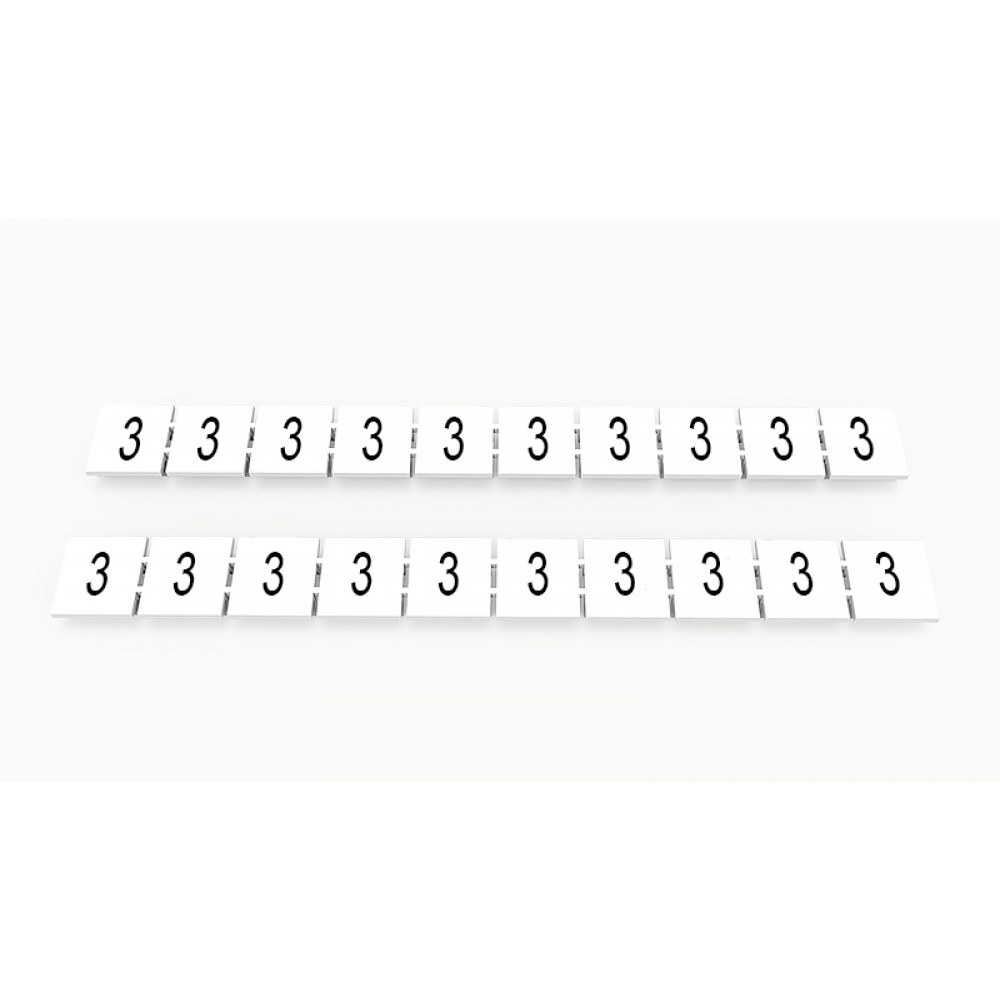 Кассета с маркировочными шильдиками, для клемм сечением 10 мм.кв., верхняя, 10 шильдиков, нанесенные символы: 3, с вертикальным расположением, размер шильдика: 9,3 x 10,7 мм, цвет: белый