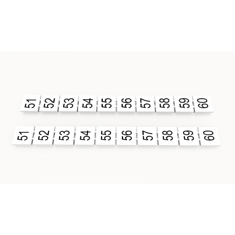 Кассета с маркировочными шильдиками, для клемм сечением 10 мм.кв., верхняя, 10 шильдиков, нанесенные символы: 51...60, с горизонтальным расположением, размер шильдика: 9,3 x 10,7 мм, цвет: белый