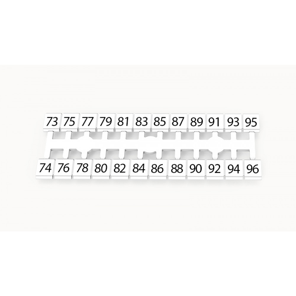 Кассета с маркировочными шильдиками, для клемм сечением 2,5 мм.кв., боковая, 24 шильдика, нанесенные символы: 1 ряд :73.75.77…95; 2 ряд :74.76.78…96, с вертикальным расположением, размер шильдика: 4,6 х 5 мм, цвет: белый