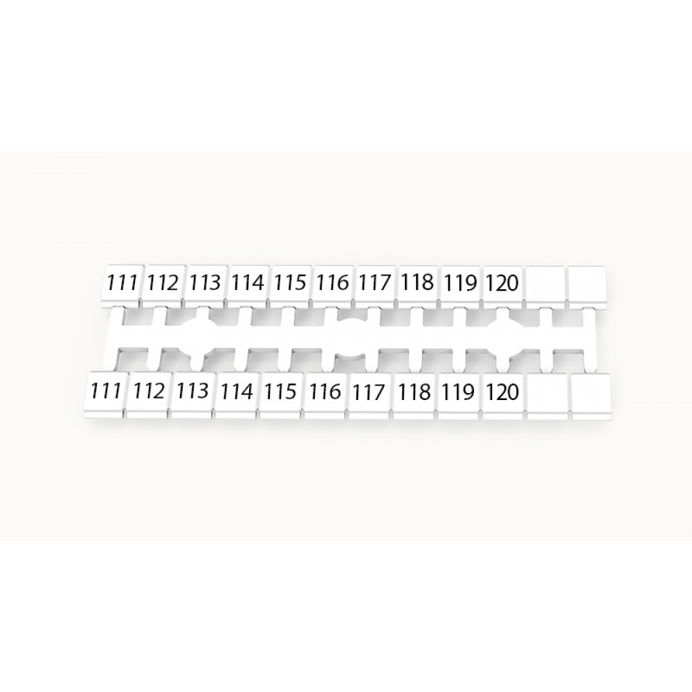 Кассета с маркировочными шильдиками, для клемм сечением 2,5 мм.кв., боковая, 24 шильдика, нанесенные символы: 111...120 + 2 чист, 2 ряда с вертикальным расположением, размер шильдика: 4,6 х 5 мм, цвет: белый